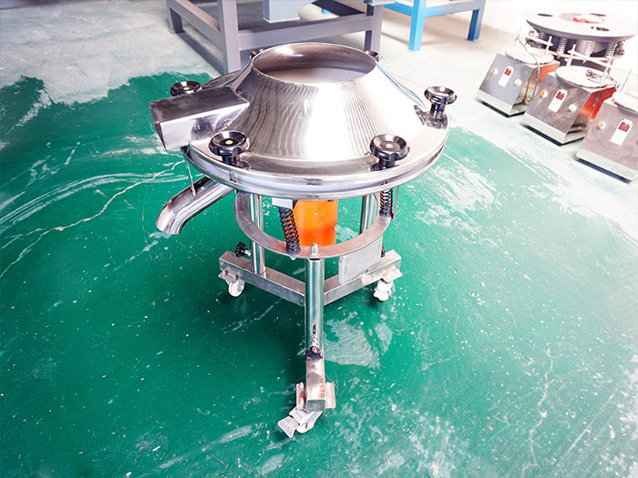 450過濾篩——直徑為450mm,由電機驅動重錘激振,篩體產生水平、垂直、傾斜的三次元運動,使含水物料在篩網上被拋起并由中央向外旋轉擴散到出料口排出,含水物料在篩網上面的運動中,細小顆?;蛞后w透過篩網,通過選擇安裝相應的篩網和篩網層數使物料完成篩選分級或過濾,分選出的物料由各自的出料口分別自動排出。是一臺單層篩分和過濾使用的振動篩,被各個廠家和用戶叫做液體專用振動篩,因為機身小的原因,所以它的處理量不多,適用于小產能要求。