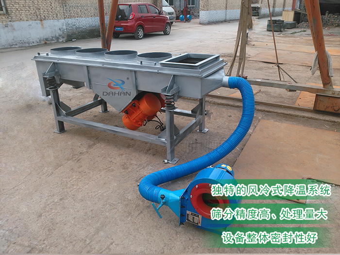 1、技術(shù)成熟,質(zhì)量可靠,篩分精度高、處理量大。獨特的風(fēng)冷式降溫系統(tǒng)設(shè)計,快速有效降溫。適用范圍廣。可應(yīng)用于各種而要降溫的物料.