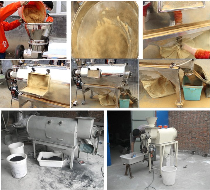 已成功應用于120-180目輕鈣、300目重鈣、400目活性鈣、300目山楂粉、320-500目鋅粉、500目氧化鐵黑等物料,良好篩分取得了效果。測得篩網面積每平方米每小時產量約1噸,經測篩分精度在95%以上,空氣含塵量小于10mg/m3。