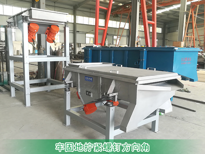 直線振動篩張緊板導角可調,安裝屏幕,應松開導向角螺栓,使上下屏幕可以移動,妥善安置,一張緊螺絲螺栓張緊板,給予輕微壓力,進而帶動導角,直到屏幕到屏幕上目前,牢固地擰緊螺釘方向角;