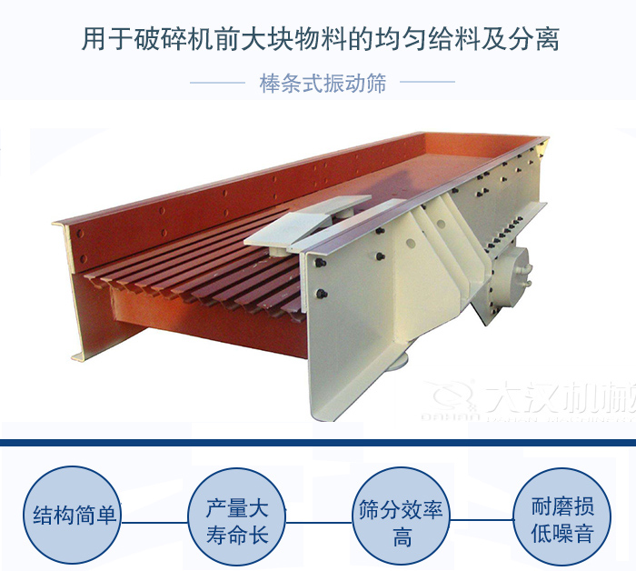 棒條篩作用:鐵礦石中細碎篩分、原煤分級、黃金、建材以及水電、核電工程砂石的篩分