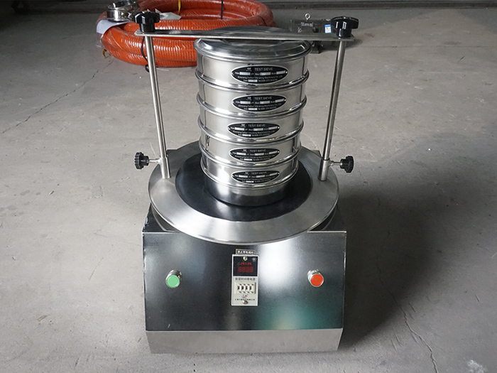 實(shí)驗(yàn)室振動(dòng)篩振動(dòng)原理:以YZU立式振動(dòng)電機(jī)作為整機(jī)振動(dòng)源,通過振動(dòng)電機(jī)帶動(dòng)上部振動(dòng)盤振動(dòng),再通過振動(dòng)盤傳導(dǎo)至安放在振動(dòng)盤上部篩框上,然后由需要檢測目數(shù)的篩框把小于篩網(wǎng)孔徑的物料顆粒篩分至下層篩框,如此層層篩選,使每層篩框內(nèi)只留相同粒度的物料,達(dá)到不同粒度的分離并確定此物料的粒度組成,使篩框中的物料能非常有效的起到過濾、分級(jí)、篩分目的。